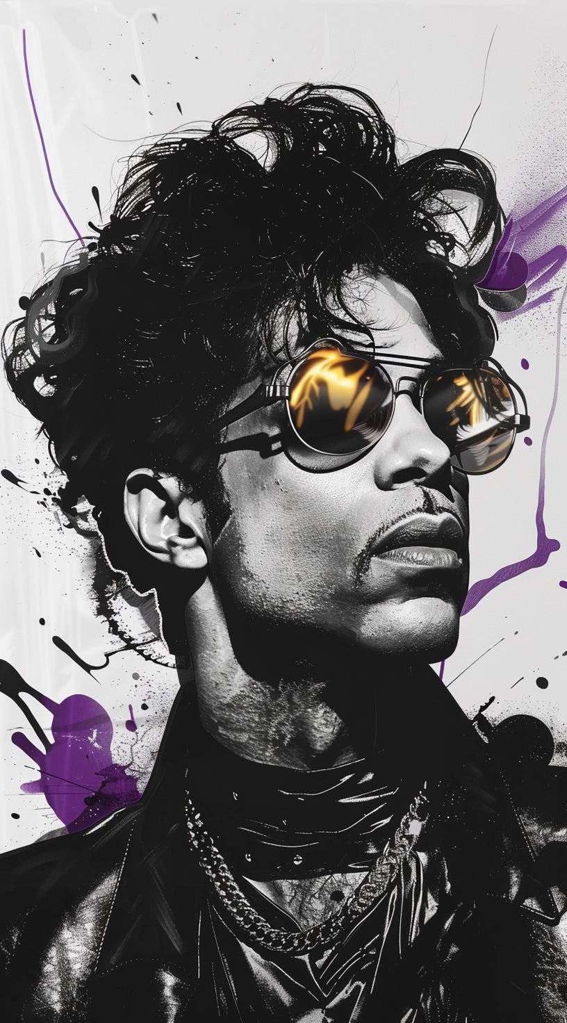black and white, Prince Rogers Nelson, popart, icon!!, sterile minimalism, fashion, --ar 5:9