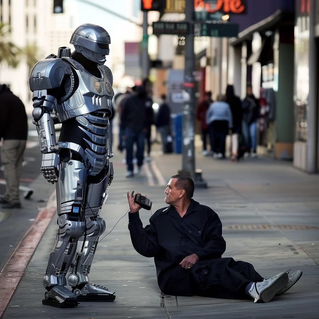 SORA prompt: "an alien blending in naturally with new york city, paranoia thriller style, 35mm film" (source)