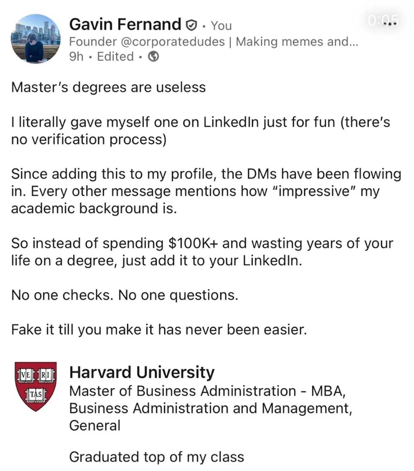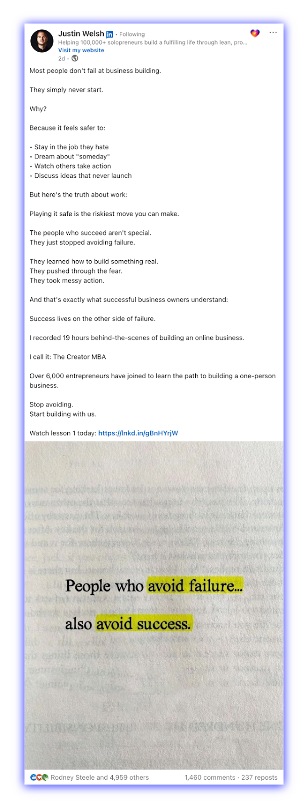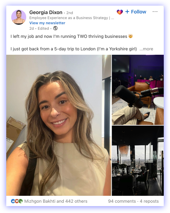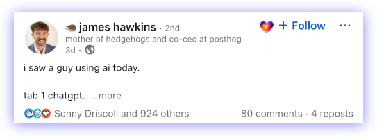 Another post that went viral this week—it got 925 likes in 3 days and performed 3.5-230 times better than James’s other posts this week.