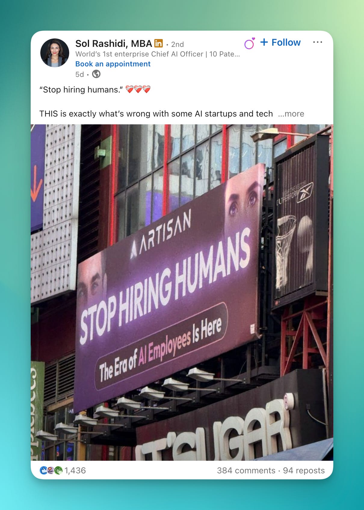 3. “Stop hiring humans.” ❤️🩹❤️🩹❤️🩹