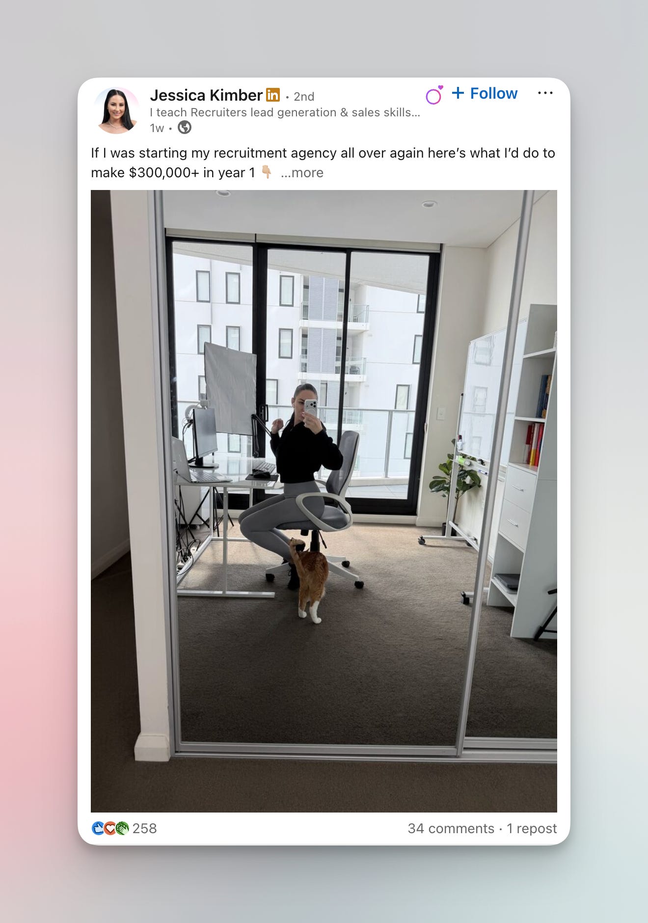Another post that went viral this week—it got 1k likes in a week and performed 7-35 times better than Jessica’s other posts this month.