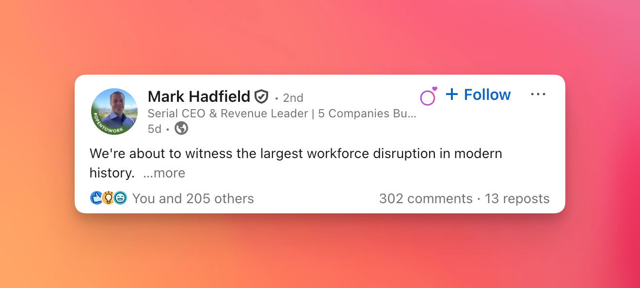 This post puts words to a fear most people feel but can’t express. It’s not just “AI will take jobs” - it goes deeper into what happens to identity and purpose when work disappears.