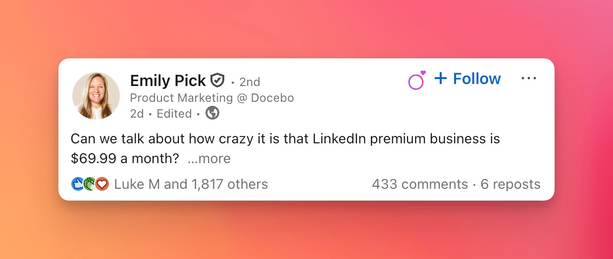 This post hits a universal pain point - LinkedIn Premium is expensive and most people aren’t sure what they’re paying for. The one feature that actually matters (seeing profile viewers) is huge for people who sell high-ticket B2B services on LinkedIn - that’s their lead source.