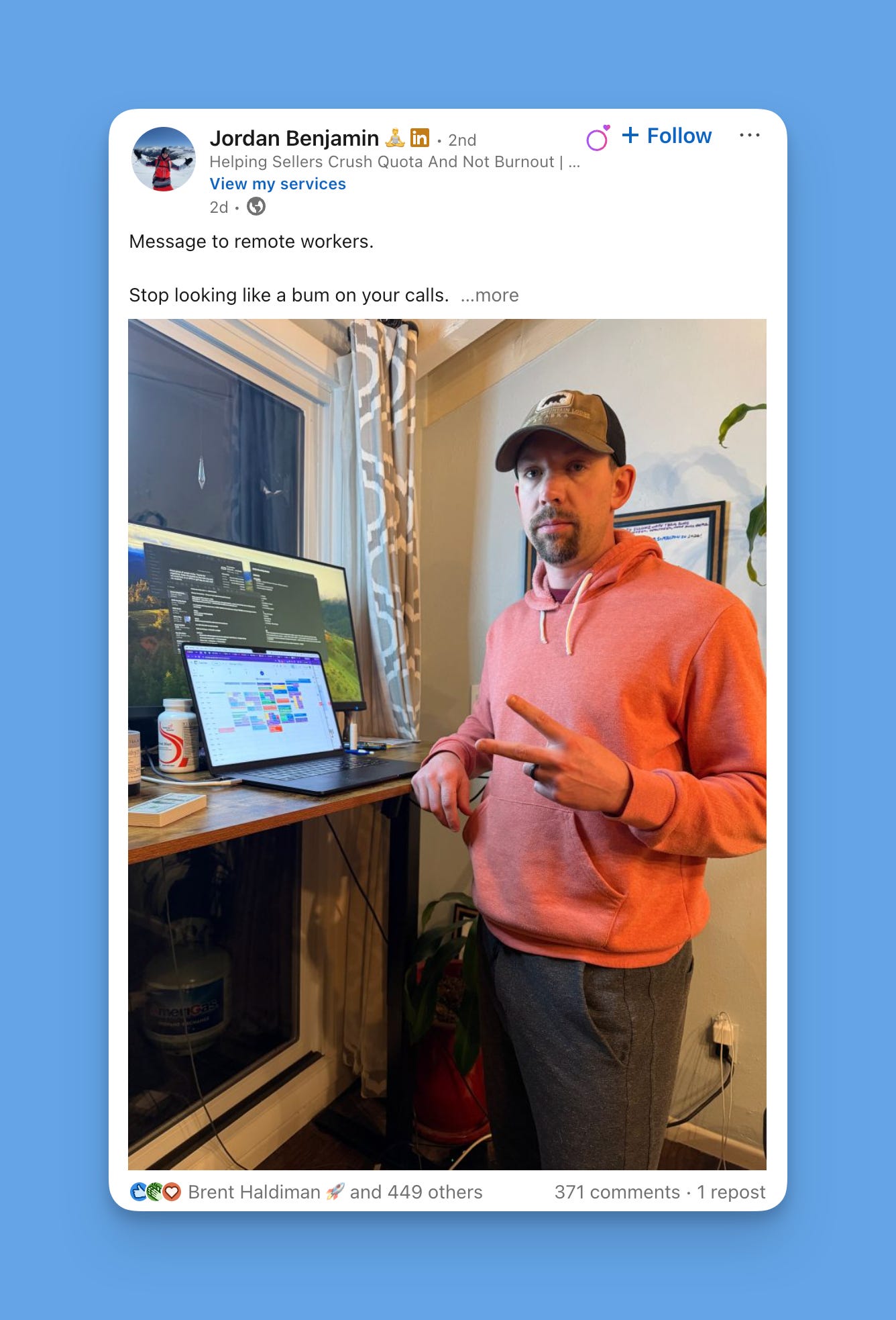 Provocative statement: “Stop looking like a bum on your calls” - blunt, slightly offensive, impossible to ignore