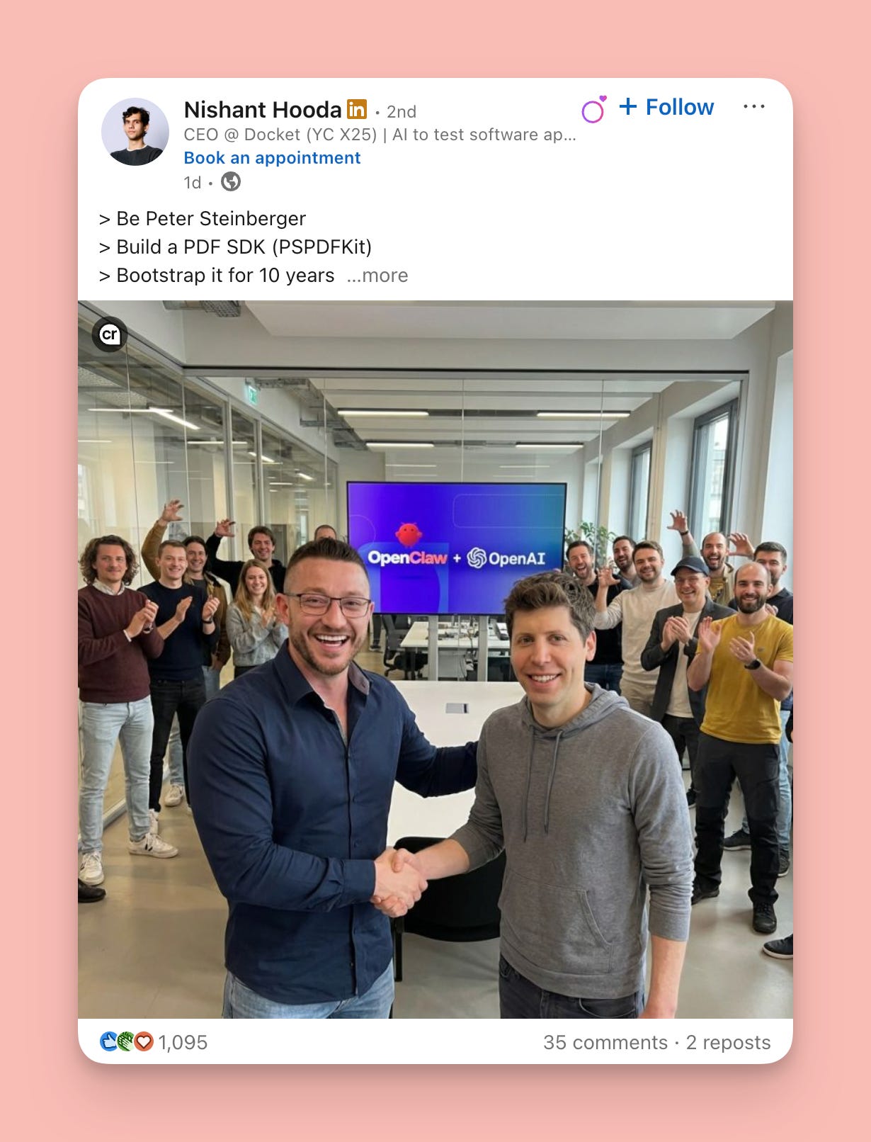 2. OpenAI just acquired OpenClaw (Clawdbot). Built by 1 guy. In Austria. With $0 funding.