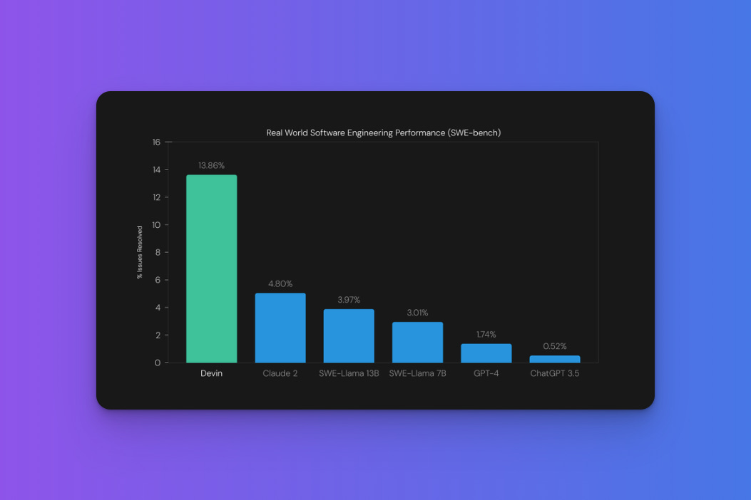 Breaking Records: On coding tests, Devin fixed 13.86% of real problems from GitHub, which is way better than the old record of 1.96%.